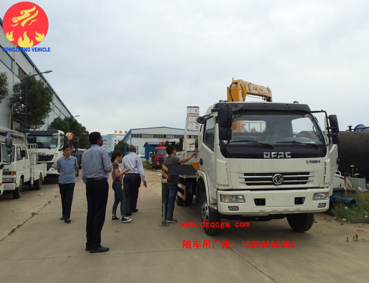 近日蘇丹客戶不遠萬里跨越重洋來參觀我公司,并檢驗我公司生產的東風多利卡3.2噸隨車起重運輸車。我公司銷售經理和技術人員耐心仔細的為客戶指導操作和講述該車的維護方法,得到了蘇丹客戶滿滿的稱贊。
