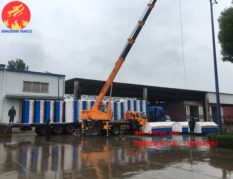 我公司生產的勾臂垃圾車采用高新設計可伸縮的鉤臂,實現垃圾廂的二次吊裝,自吊上放下,可自行傾倒垃圾。該車結構簡單,操作穩定方便,裝卸效率高,機械化程度高,節省人力。一車可帶多個大廂,在裝卸的運輸過程中可有效地避免二次污染。