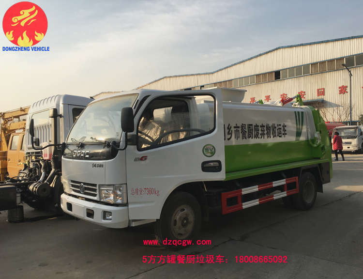 浙江省嘉興市桐鄉市政在我公司訂購6臺餐廚垃圾車,該餐廚垃圾車采用東風小多利卡國五底盤,朝柴102馬力,3308mm軸距,鋼絲胎,ABS。圓形碳鋼罐體,罐體厚度5mm,拉桿提升機帶上蓋聯動;后蓋液壓開啟;內置推鏟卸料,帶渣液分離功能。餐廚垃圾車可分罐式和廂式。