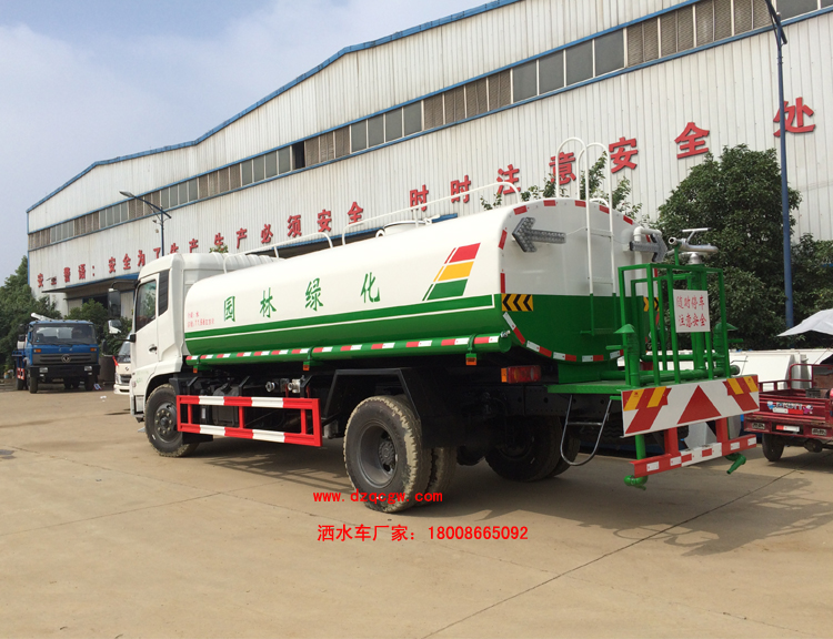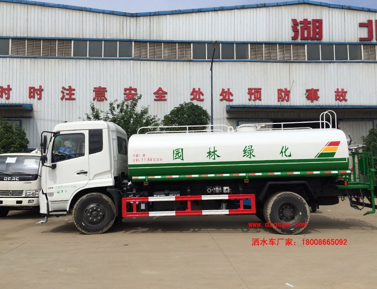 底盤說明:東風天錦國五底盤,國五康明斯發動機,4.5T前橋,9噸后橋,東風6檔變速箱,9.00R20鋼絲胎,帶空調,ABS。外形長8600,8400mm與軸距4700,4500mm一一對應,罐體有效容積:11.15立方米。運輸介質:丙酮水溶液。帶免征。 專用功能:該多功能灑水車適合于各種路面的灑水、噴霧、降溫、除塵、沖洗塵埃臟物,亦可用于園林綠化、市政環衛、路面養護及應急消防、運輸飲用水等。專用部分由罐體、水泵、球閥、輸水管道、灑水裝置等部件組成。水泵、取力箱、球閥均為國家定型產品,具有性能良好,工作可靠、壓力高、流量大、油耗低等特點。 改裝部分:標配前沖、后灑、側噴、工作平臺、綠化高炮、自流閥、消防接口,輸水管3米2根,8噸以上罐體帶高位花灑2個,億豐泵或金龍泵,控制方式為手動。選裝氣動閥門控制;高位花灑,大鴨嘴,藥盤,罐體側面加裝萬向可調節噴頭,罐體后部壓塵噴灑裝置,兩個圓警燈或長警燈,LED箭頭燈,泵可選裝威龍泵或農藥噴霧裝置。 |